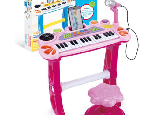 Roze klavijatura sa mikrofonom,stolicom i MP3 priključkom