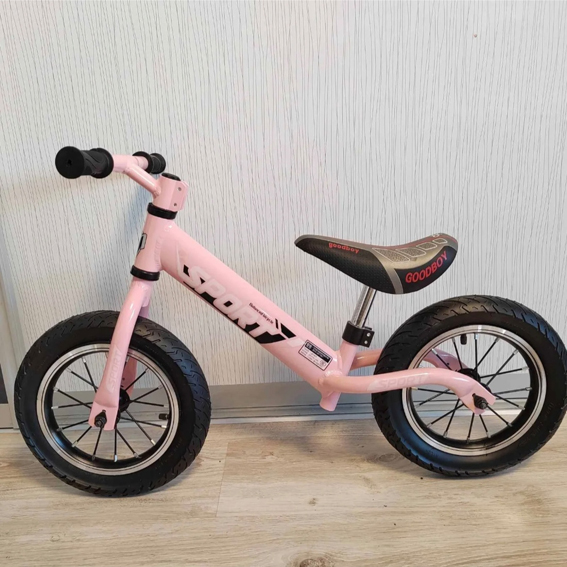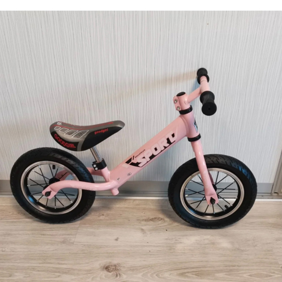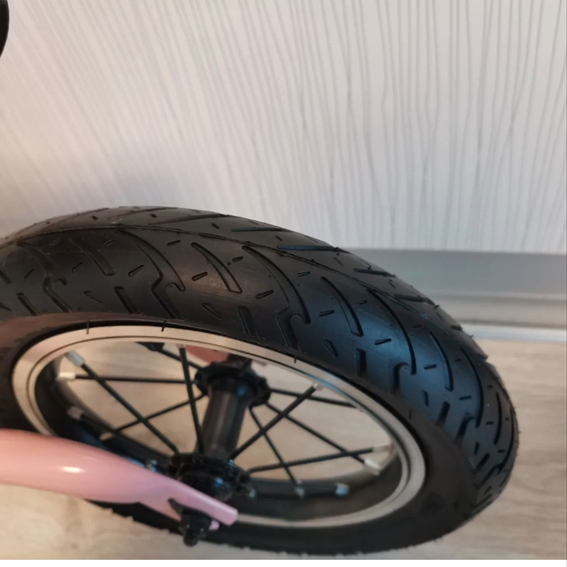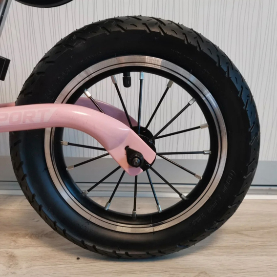 Balans bicikl na dva točka sa čiji čvrst ram nose gumeni točkovi. Gume na naduvavanje lako amortizuju sve prepreke na putu i doprinose osećaju udobnosti i sigurnosti vožnje. Podesivo sedište prati rast mališana.