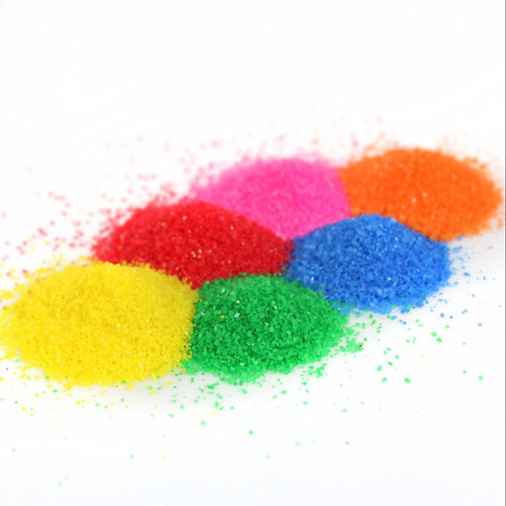 Pesak je cveni,plavi,žuti,roze,naranđzasti i zeleni.Upakovan u 6 vrećica.
